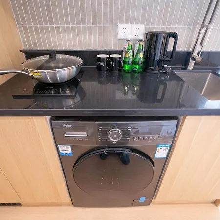 Ett utrustat kök med kylskåp, kittel och spishäll finns på detta boende. Den närliggande tunnelbanestationen är Dapuqiao Road, invid den här lägenheten.